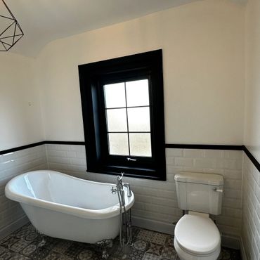 A fresh look for this utility space with white walls and beautifully finished deep blue panelling, finished in a durable satin sheen.
